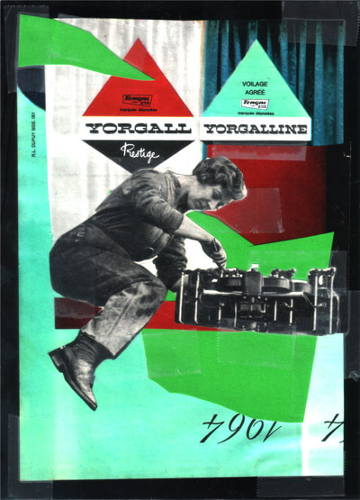 Collage Voyage: Fitacola collages (also see http://fitacola.com/category/folio ) are made of scissor cuts and adhesive tape reassemblings from original paper stuff we've been acquiring through these years... having reached a point of almost endless supplies, the process is quite simple... assemble by having fun.